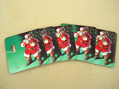 5 Vintage Coca Cola Coasters / Christmas / santa with Terrior Dog made in Taiwan