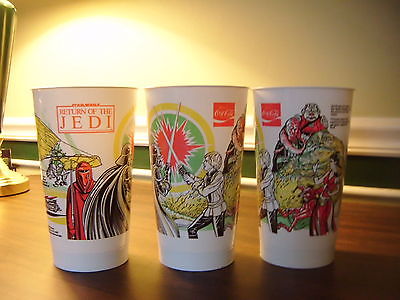 3 VINTAGE 1983 Star Wars Return of the Jedi Coca Cola Plastic Cups