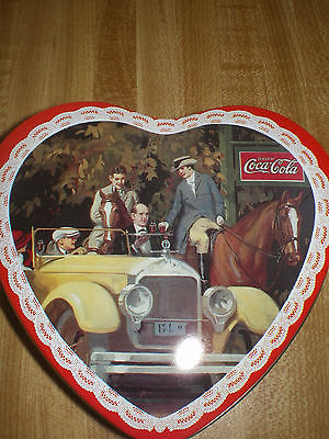 Valentine Coca Cola Heart Tin from 1997 Vintage Car w People on Horses