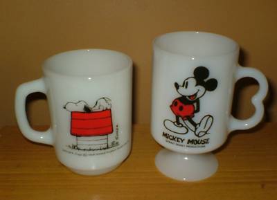 VTG Fire King Milk Glass Snoopy Mickey Mouse Mug LOT NM