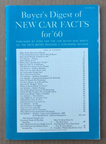 Title (ebay affiliate link): Ford Buyer's Digest of New Car Facts For 1960 FoMoCo auto literature