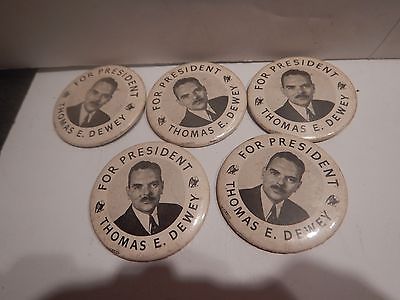 Five old Thomas E. Dewey for President Pins buttons estate 2 1/2 inch