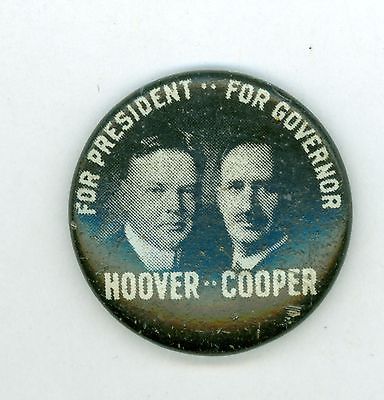 Vintage 1932 President Hoover Governor Cooper Political Campaign Pinback Button