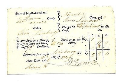 Title (ebay affiliate link): 18thc Early American "RECEIPT" Court Document from North Carolina 1786