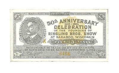 Ringling Brothers BARABOO SCRIP Note 5 Cents 1933