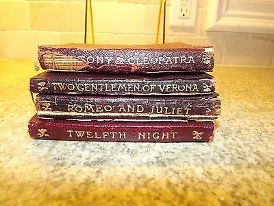ANTIQUE Early 1900's Set The Temple Shakespeare 4 Books Red Leather COVER