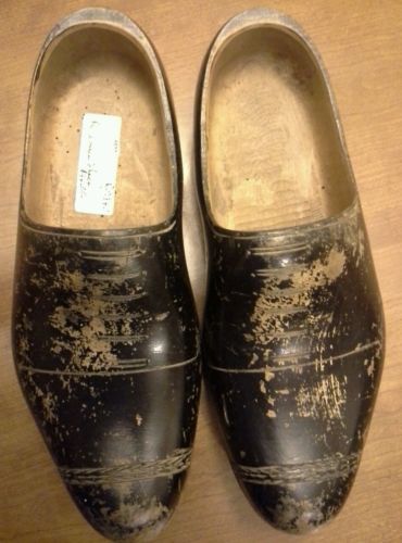 Title (ebay affiliate link): Black antique folk art primitive hand carved wood shoes, size 13? Morvan?