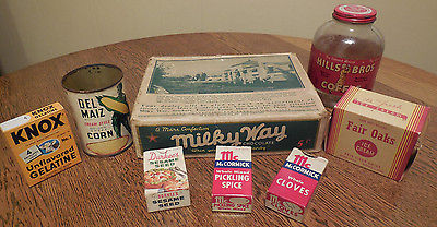 PRIMITIVE VINTAGE ICE CREAM GELATIN COFFEE CANDY SPICE ADVERTISING KITCHEN LOT