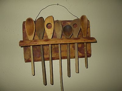 Title (ebay affiliate link): VINTAGE INSPIRED WOOD HANGING SPOON RACK W/ OLD WOOD SPOONS -RED BARN WOOD COLOR
