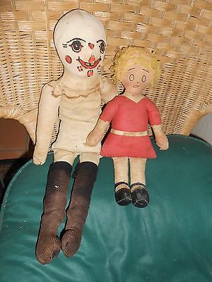 Antique Rag Doll Lot of 2-Unusual Straw Stuffed-21" & 14" long