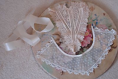 2 ANTIQUE COLLARS IRISH ROSES HAND CROCHETED JABOT NET LACE EDGING DOLL RIBBON