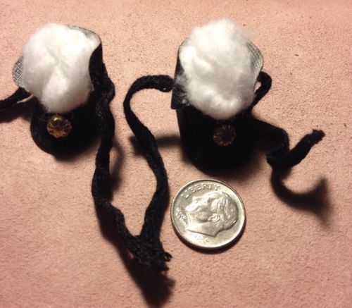 Antique Vintage Black Tie Doll Shoes