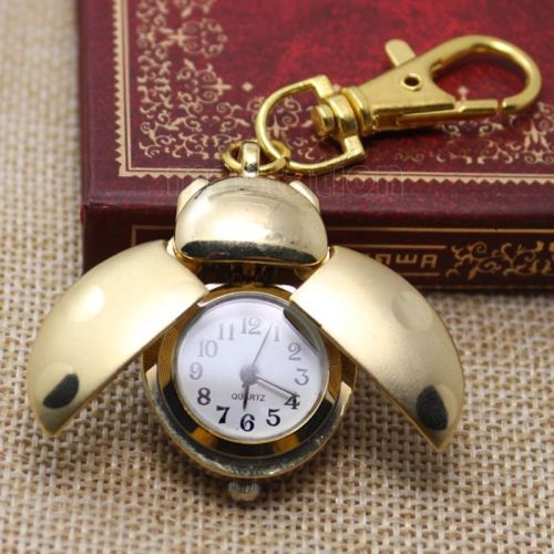 New Fashion Golden Beetle Keychain Stainless steel Pocket Watch P590 Unisex US
