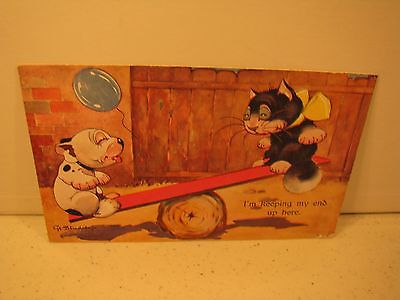 Postcard - BONZO -playing w'friend - "I'm keeping my end up here" Studdy