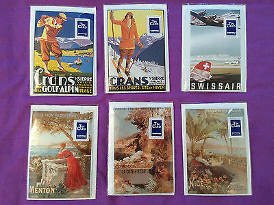 6 retro enamel tin metal postcards Vintage French Countryside Travel Swissair