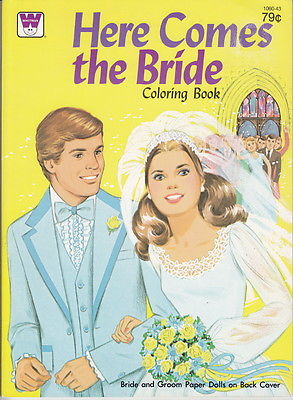 Title (ebay affiliate link): Vintage Here Comes the Bride Coloring Book Bride and Groom Paper Dolls Unused