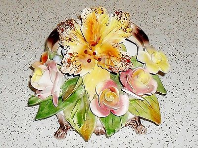 Vintage Capodimonte porcelain flower figurine 6 3/4" high, 7 1/2" wide
