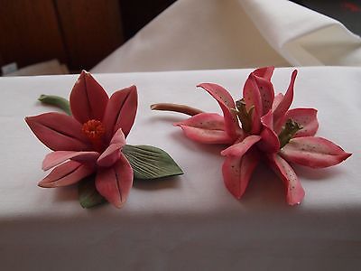 2-VINTAGE CAPODIMONTE PORCELAIN FLOWERS MARKED W/CROWN & "N" DUSDEN??