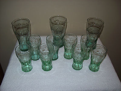 Collectible COCA-COLA Green Glasses 3 Large and 8 Small / EUC
