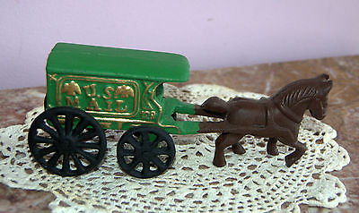 Title (ebay affiliate link): CAST IRON, HORSE DRAWN WAGON, OLDER REPRODUCTION, Minature