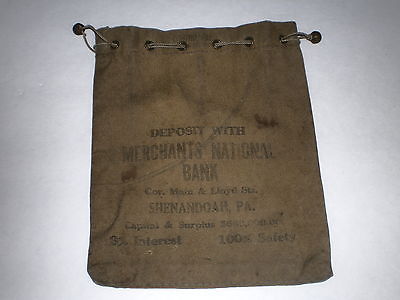 ANTIQUE CANVAS MERCHANTS NATIONAL BANK ,SHENANDOAH,PA.MONEY DEPOSIT BAG