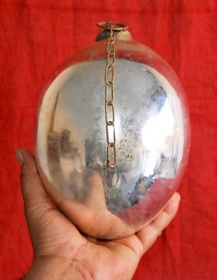 Vintage Egg Shape Glass Round Shape Big 7.5'' Kugel Christmas Ornament Chain