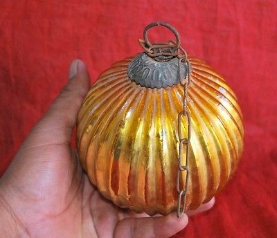 Antique Glass Rare Golden Beautiful 6'' Kugel Christmas Ornament Hanging Chain