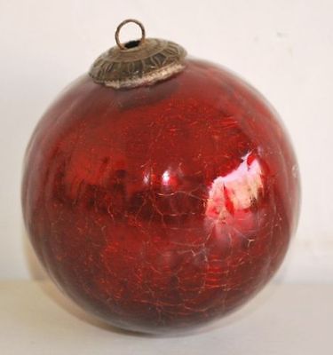 Vintage Rare Round Shape Red Color Glass Kugel Christmas Ornament