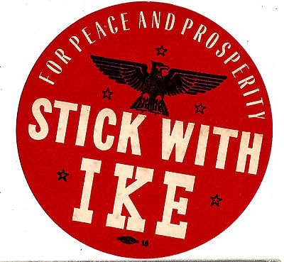 Title (ebay affiliate link): STICK WITH IKE. For Peace and Prosperity / Eisenhower. Circa 1952.