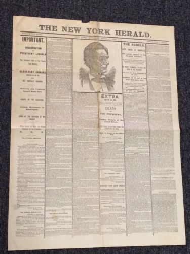 Title (ebay affiliate link): April 15 1865 new york herald newspaper assassination president Lincoln REPRINT