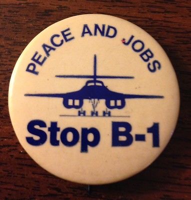 Title (ebay affiliate link): Peace and Jobs Stop B1 Cause Pinback Button