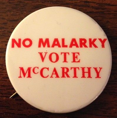 Title (ebay affiliate link): No Malarky Vote (Gene) McCarthy Pinback Button