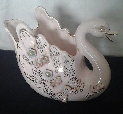 Title (ebay affiliate link): Vintage Capodimonte style Pink Swan Planter Gold Trim 5 1/2"