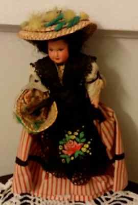 Title (ebay affiliate link): Vintage French Doll With Straw Hat & Basket, Beautiful Details 7.5" Tall