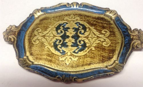 Title (ebay affiliate link): Vintage Blue Gold Gilt Vintage Italian Florentine Tole Painted Wood Tray Plate