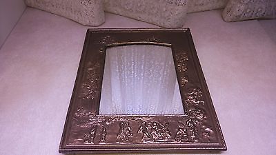 Victorian Cast Metal Figural Mirror 10" x 12" Heavy Metal Gold Painted