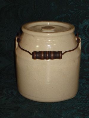Antique Stoneware Crock & Lid with Bale Pat'd Feb 11 1896 Quart