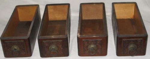 *Vintage*SEWING Machine DRAWERS*Carved*WOODEN*Hardware*BRASS*Pulls*LEAF*Boxes*4*