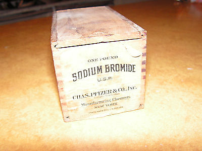 antique wooden box with medicine advertising 5"x 2 1/2"x 2 1/2"