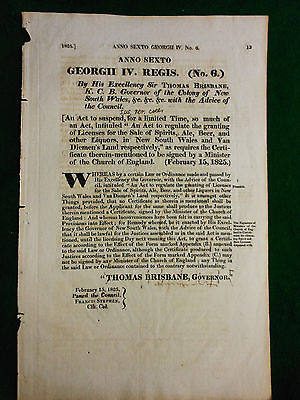 BRISBANE, Thomas. NSW Act re Sale of Spirits, Ale, Beer & Liquors 1825. [BJWMS].