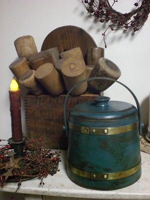 Title (ebay affiliate link): Primitive Colonial Blue Wooden Sugar Bucket ~ Wood Firkin Bucket