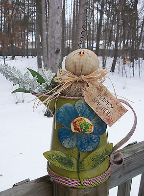 FoLk Art PrimiTive SpriNg EasTer CHICK DOLL Flower Watering Can Table Decoration