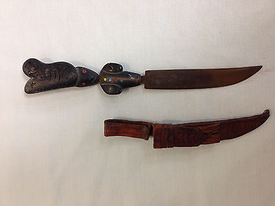 Antique Tribal Dirk Dagger Knife,Hand Carved with leather scabbard