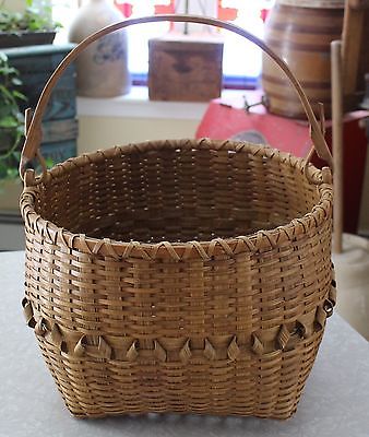 Title (ebay affiliate link): Vintage large Hancock splint ash wood woven swing handle basket #1