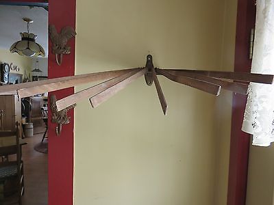 Title (ebay affiliate link): ANTIQUE WOOD RUSTIC FOLDING WALL MOUNT DRYING RACK CLOTHES DRYER HERB HANGING
