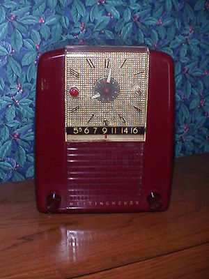 Title (ebay affiliate link): ANTIQUE YEAR 1946 WESTINGHOUSE TABLE RADIO CLOCK MODEL H-397T5 MAROON ESTATE