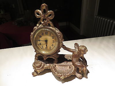 Title (ebay affiliate link): Vintage Victorian Era Cast Brass Guilded table Shelf Clock Cherub Putti Cupid NR