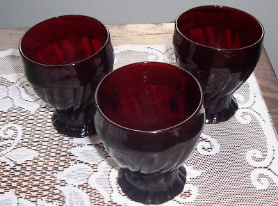 Title (ebay affiliate link): THREE DEPRESSION ERA RUBY RED GLASS TUMBLERS GLASSES