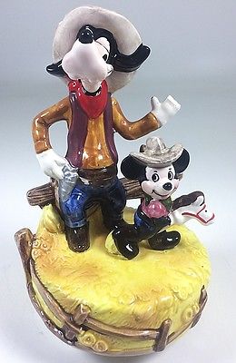 Title (ebay affiliate link): VINTAGE WALT DISNEY COWBOY GOOFY and BABY MICKEY MUSIC BOX HAND PAINTED SCHMID
