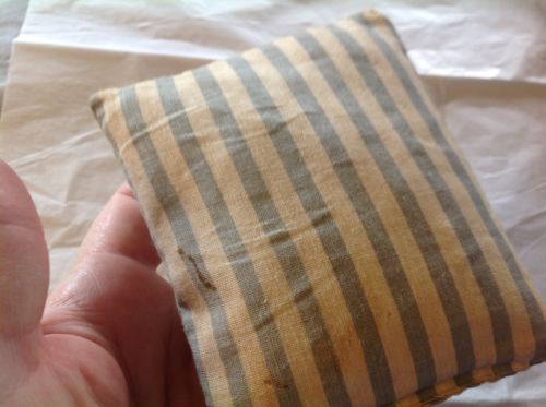 Title (ebay affiliate link): Moprimitivepast Antique Original Farm House Doll Bear Pillow Blue Ticking Aged